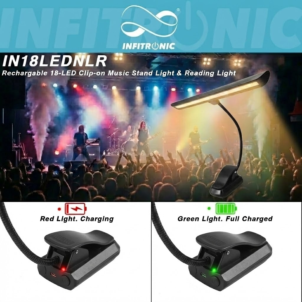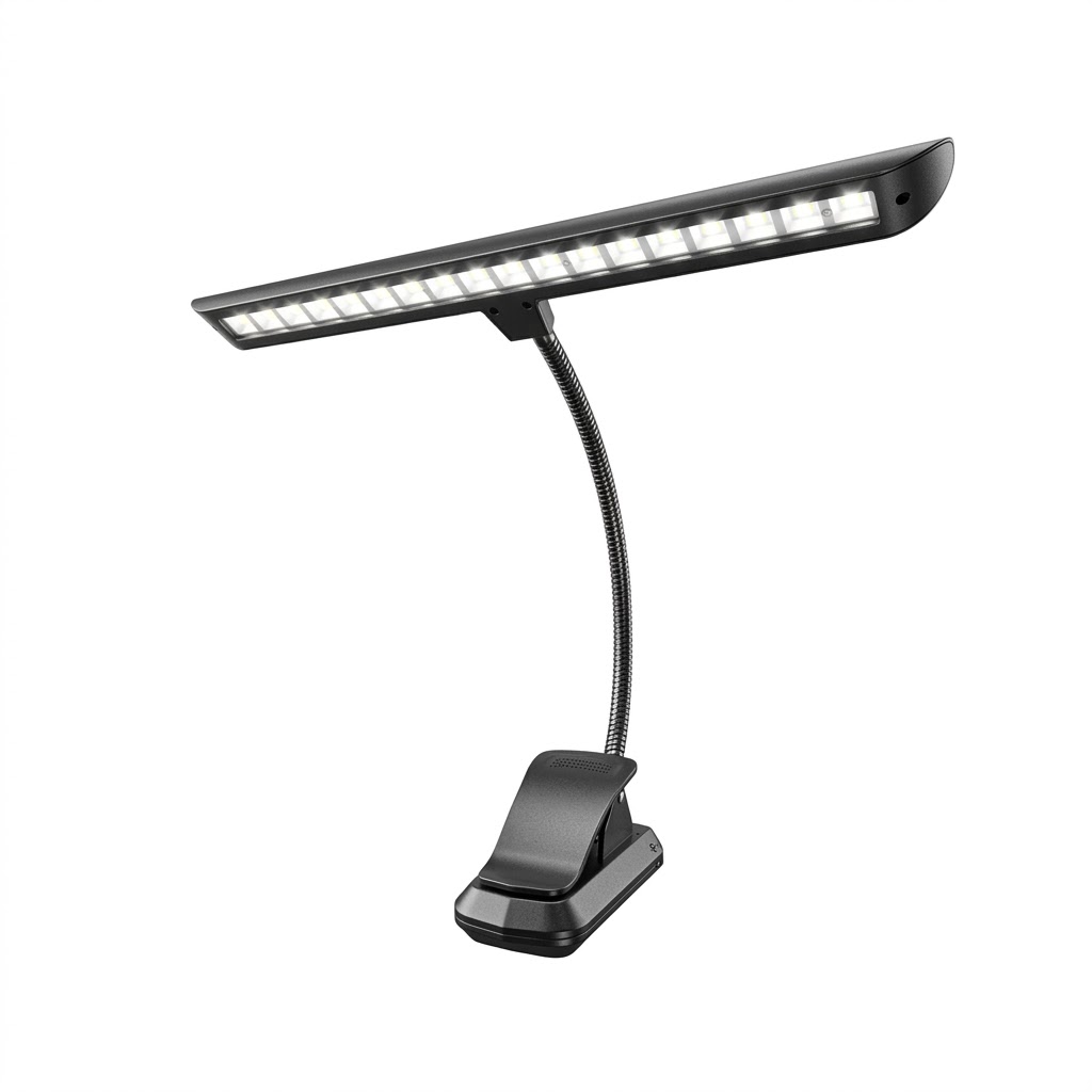 Professionelles Licht, wo immer Sie es brauchen Diese hochwertige LED-Notenpultleuchte ist die ultimative Lösung für Musiker, die Wert auf erstklassiges Licht und maximale Unabhängigkeit legen. Dank des integrierten 2000 mAh LiPo-Akkus sind Sie nicht mehr auf Steckdosen oder Einwegbatterien angewiesen. Ob bei der Probe, auf der Bühne oder im Freien – genießen Sie stundenlanges, zuverlässiges Licht.