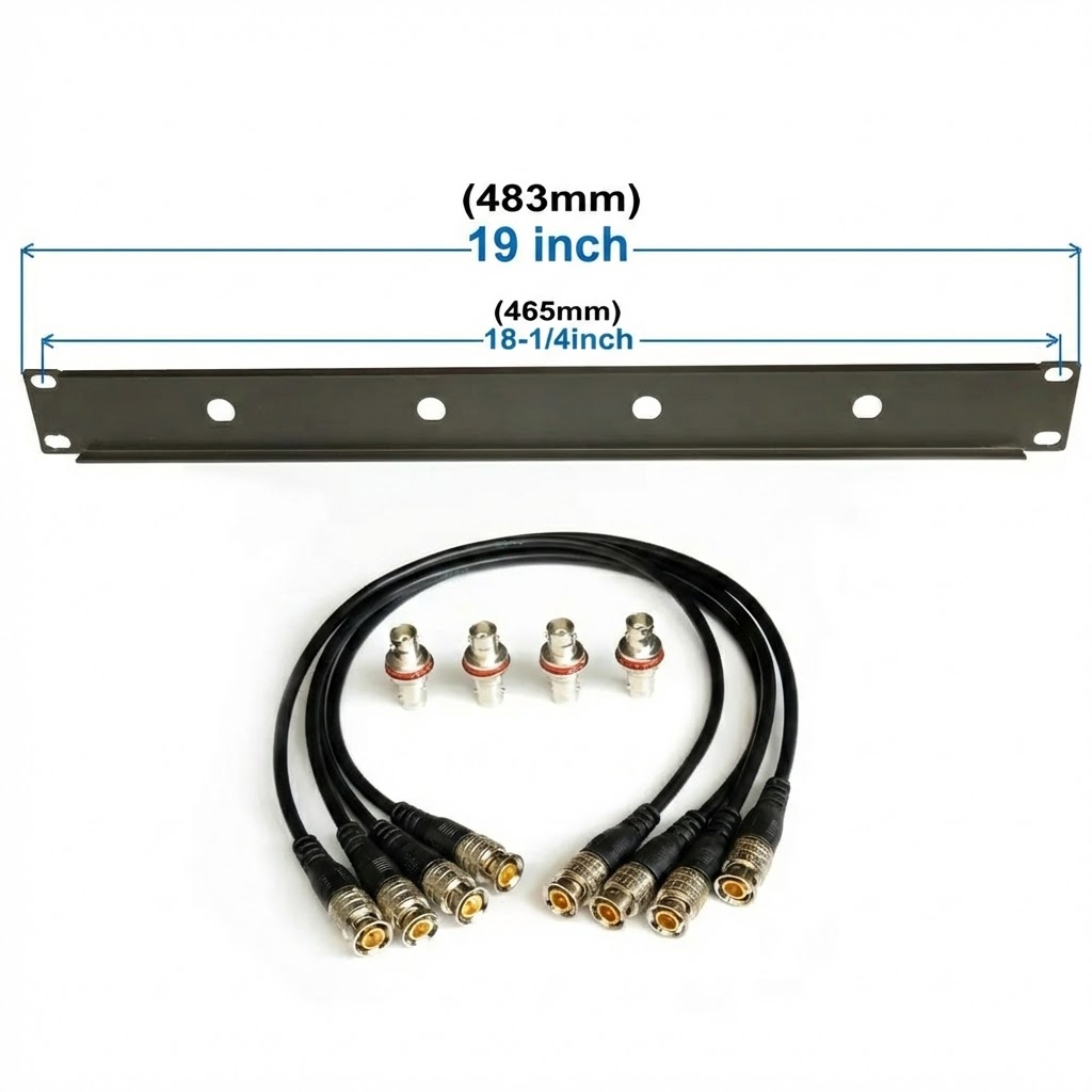 ALL-IN-ONE LIEFERUMFANG: Sie erhalten ein komplettes Installations-Set: 1x stabile 19″ Stahl-Blende (Schwarz), 4x BNC-Durchführungsadapter (Schott) und 4x hochwertige BNC-Kabel (Stecker auf Stecker) mit einer Länge von 20 Zoll (ca. 50 cm).