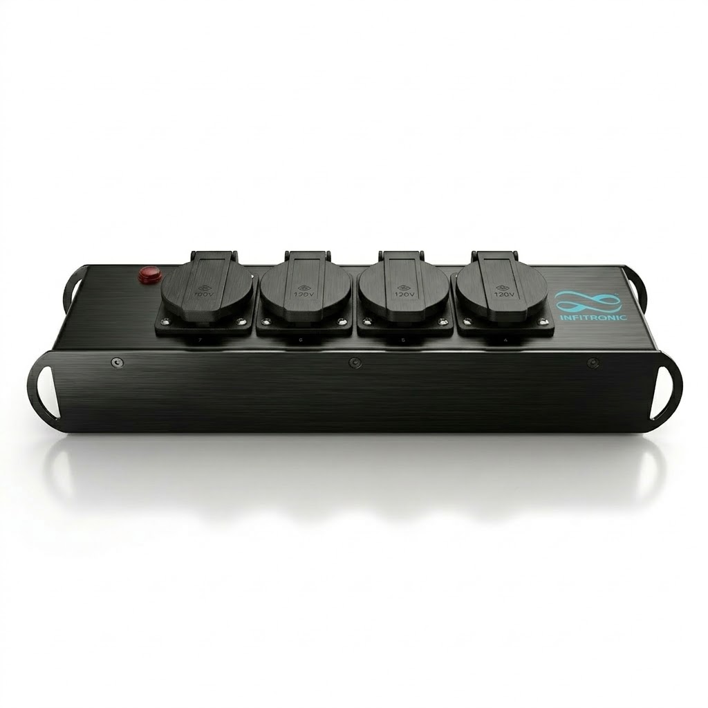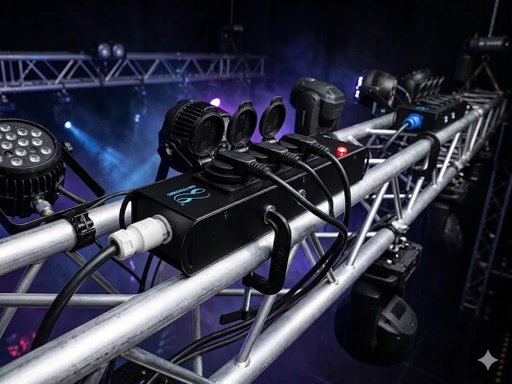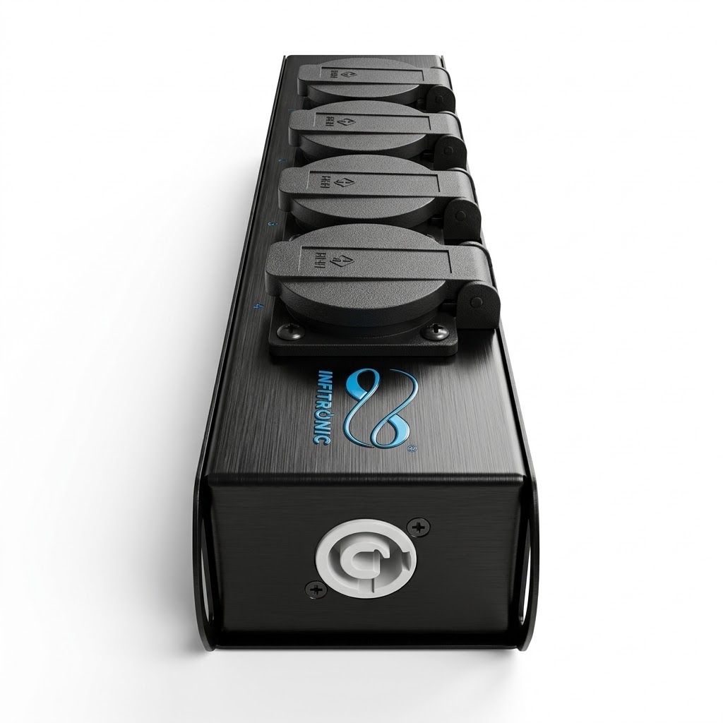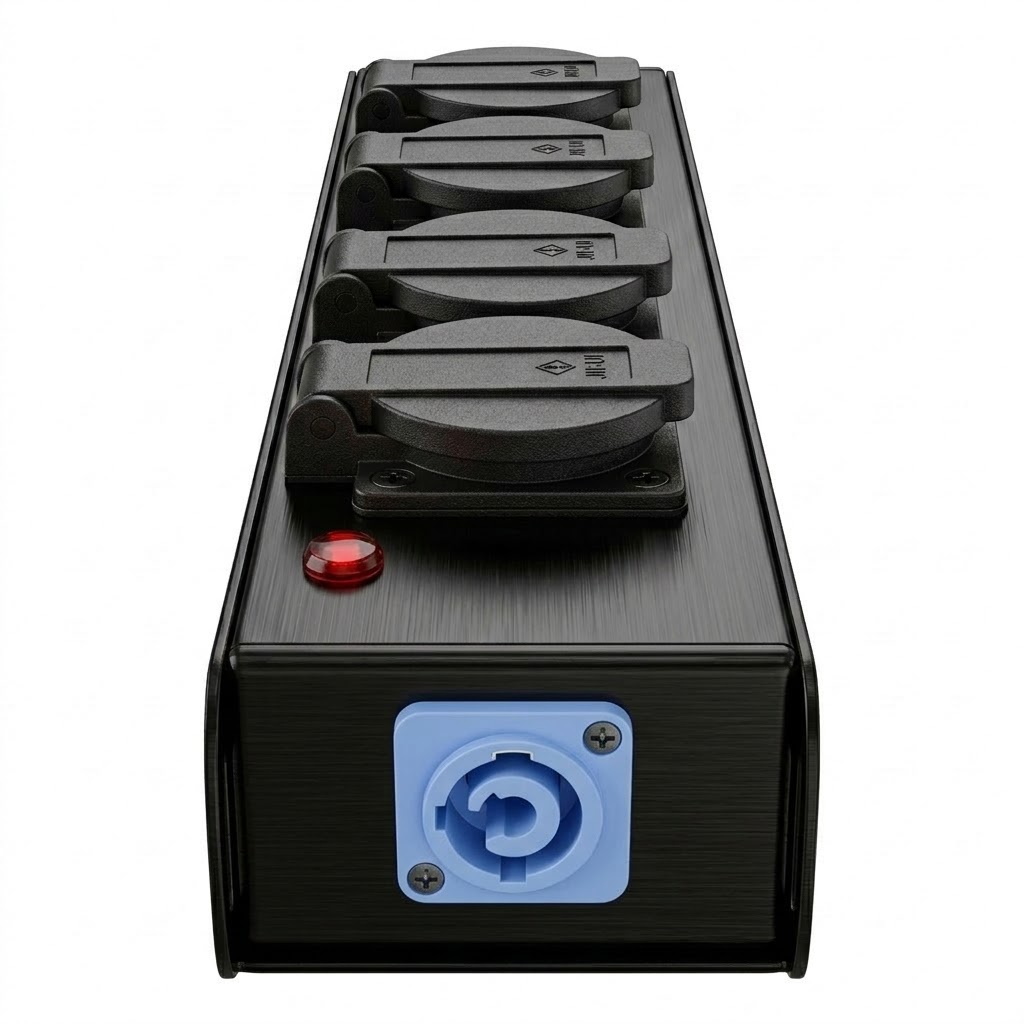🏗️ ROBUST FÜR DEN TOUR-ALLTAG (16A): Konzipiert für den harten Dauereinsatz in der Veranstaltungstechnik. Das extrem widerstandsfähige Metallgehäuse und eine professionelle interne Verkabelung (1,5 mm² Querschnitt) garantieren einen belastbaren Dauerbetrieb bis 16 Ampere.
