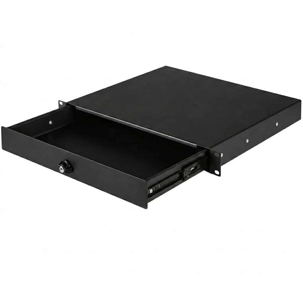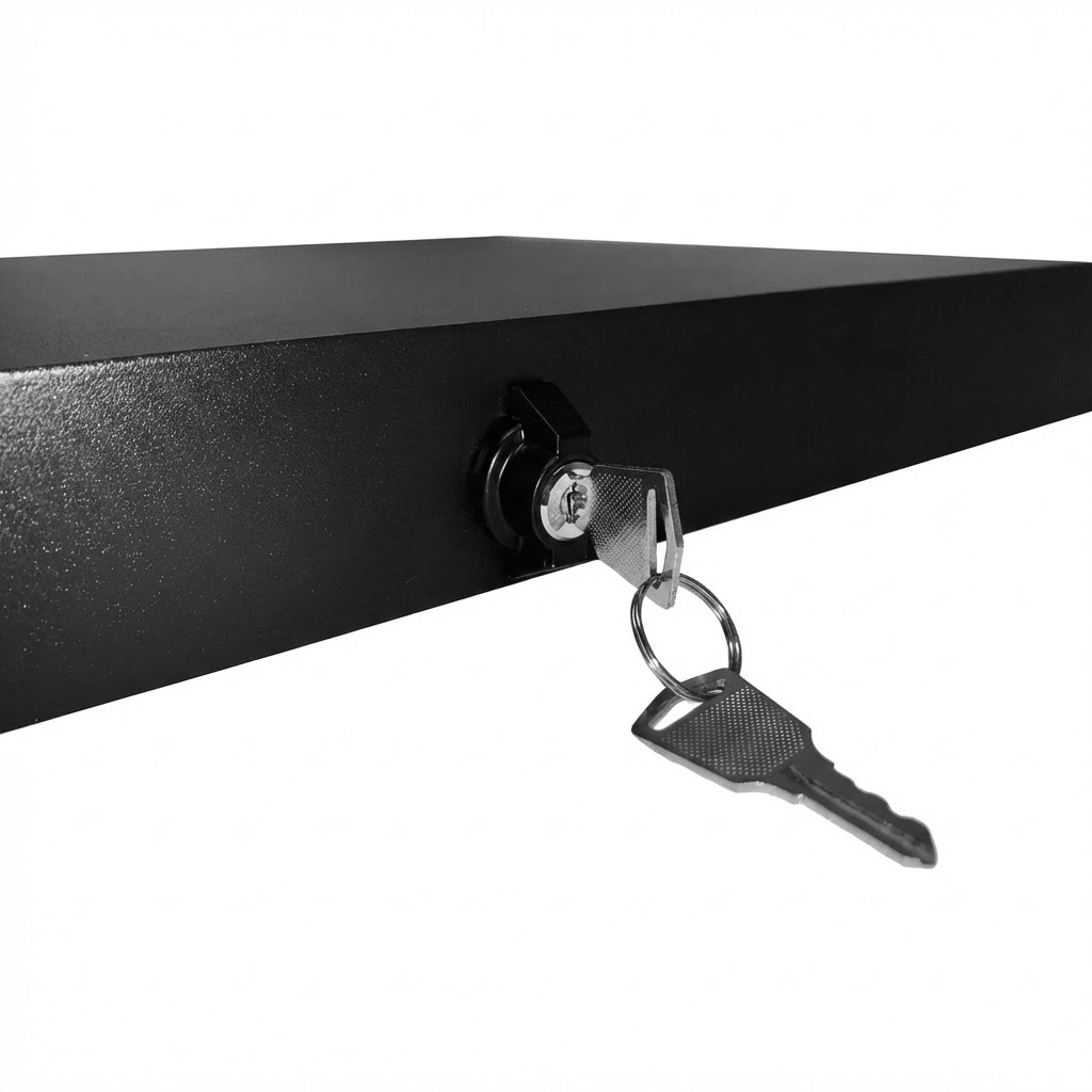 SICHERHEIT & SCHUTZ: Die Frontblende verfügt über ein integriertes Zylinderschloss, um teures Equipment vor unbefugtem Zugriff zu schützen (inkl. 2 Schlüssel). Die schwarze Pulverbeschichtung (RAL 9005 ähnlich) schützt vor Kratzern und Korrosion.