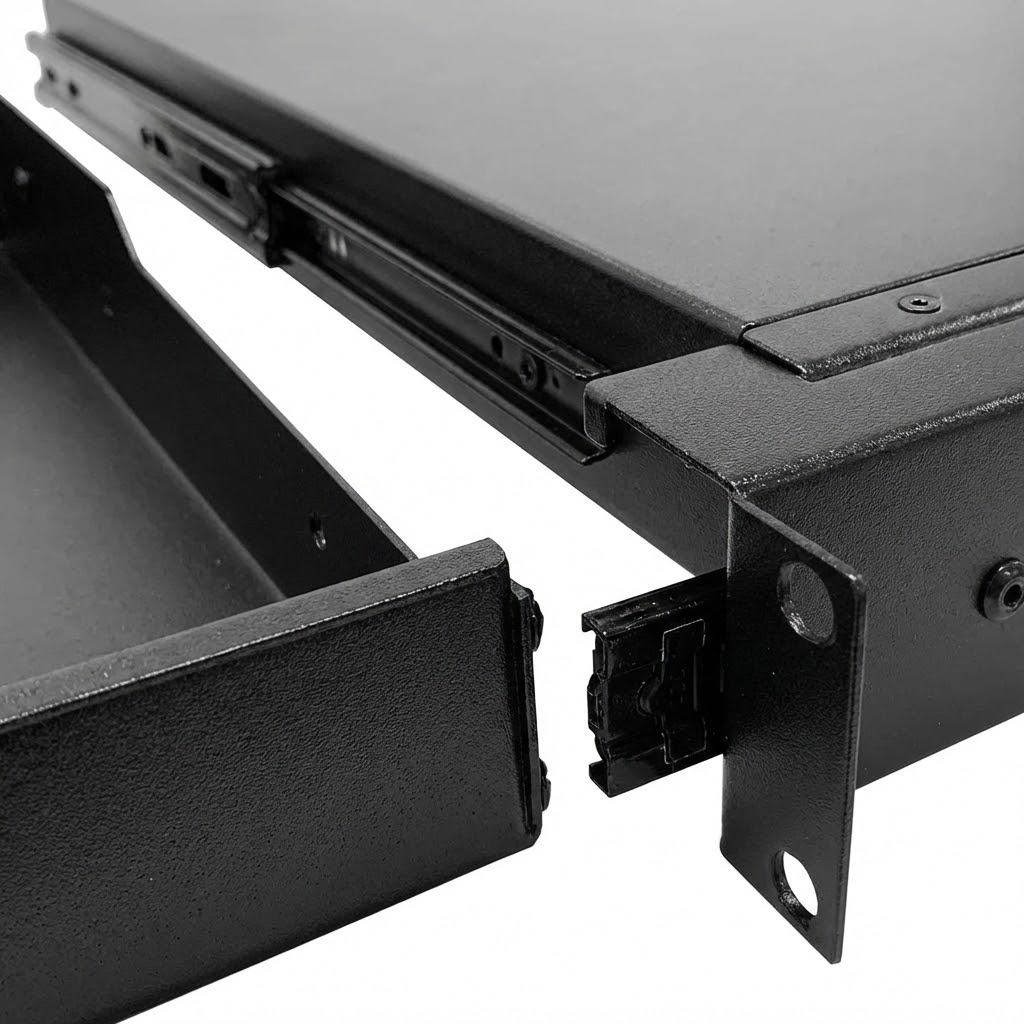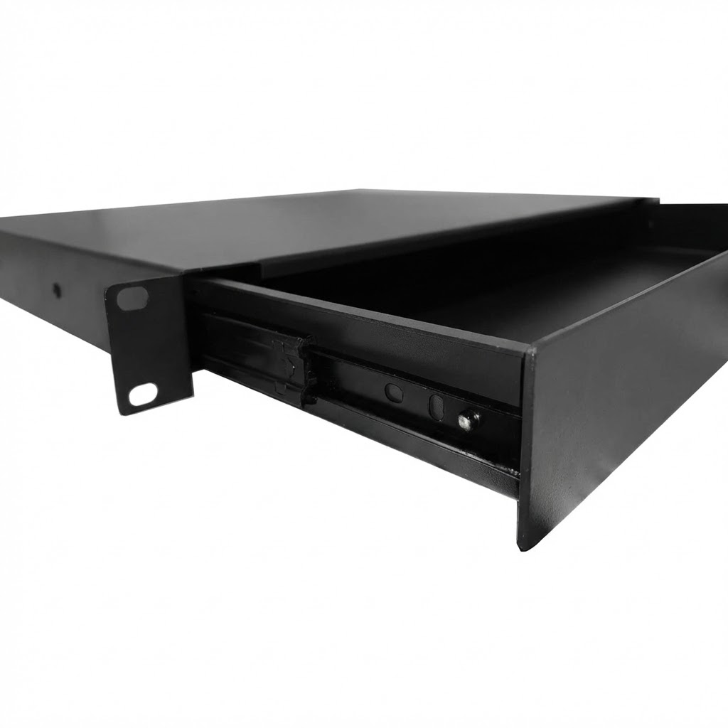 PERFEKTE PASSFORM (1HE): Diese standardisierte 19 Zoll Rackschublade (48,3 cm) passt ideal in jeden gängigen Netzwerkschrank oder Serverschrank. Mit einer Höhe von 1 HE (Höheneinheit) und einer Außentiefe von ca. 358 mm bietet sie platzsparenden Stauraum für nicht einbaufähiges IT-Zubehör, Werkzeug oder Dokumente.