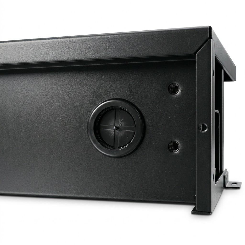 KABEL- & LUFTMANAGEMENT: Im Gegensatz zu Standard-Schubladen verfügt die Rückseite über 2x Kabeldurchlass für saubere Verkabelung und 1x Luftdurchlass zur Wärmeabfuhr – perfekt für aktive Geräte wie Laptops, Festplatten oder Funkstrecken.