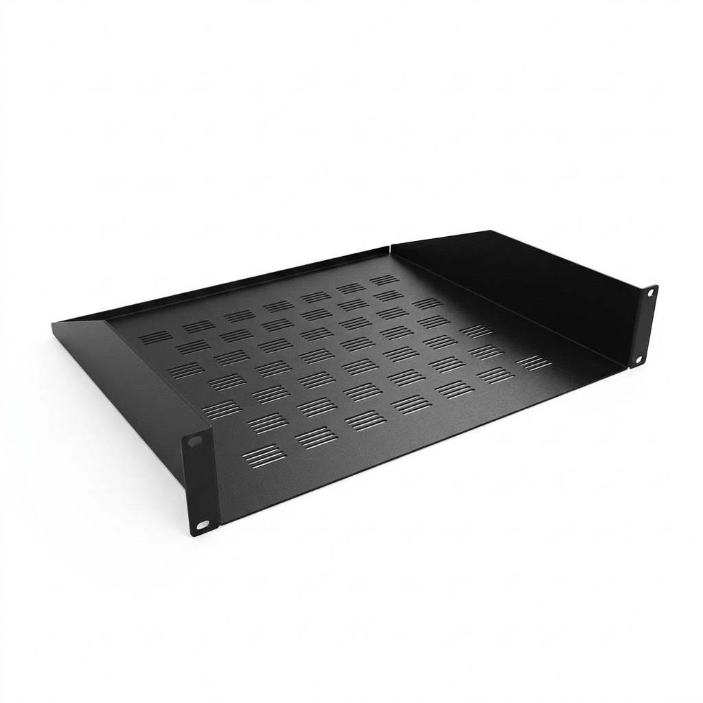 STABILE 2HE ABLAGE: Dieser 19 Zoll Fachboden belegt 2 Höheneinheiten (2U) im Serverschrank. Die höhere Frontblende sorgt für eine noch festere Verankerung an den Profilschienen und bietet optisch einen sauberen Abschluss für Geräte, die höher aufbauen.