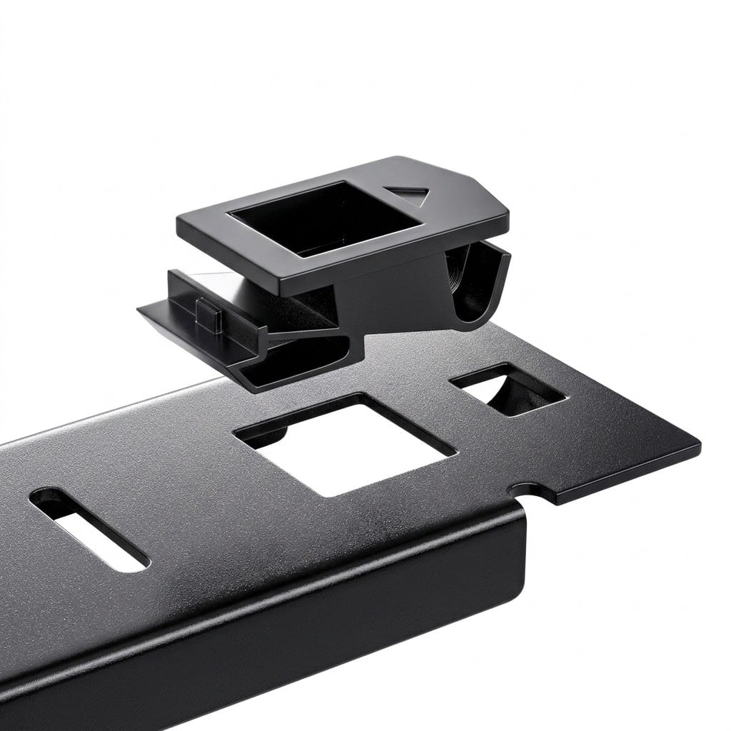 PATENTIERTE SNAP-IN MONTAGE: Revolutionäres, werkzeugloses Design! Dank der innovativen Kunststoff-Rasterfeder lässt sich diese Blende in Sekundenschnelle komplett schraubenlos in 19 Zoll Lochraster-Profile und Rackschienen einrasten.