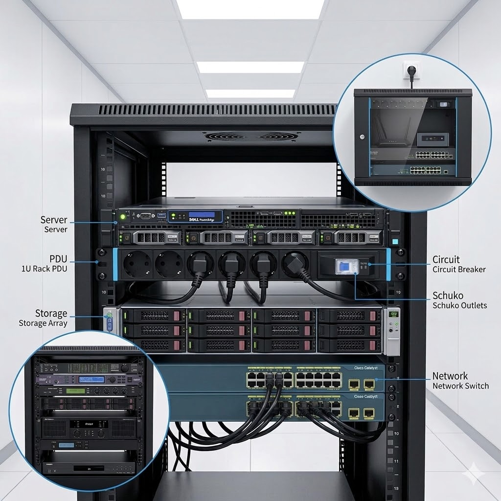 Die INSV1012 ist eine sicherheitsorientierte Stromverteilungseinheit (PDU) für 19-Zoll-Server- und Netzwerkschränke. Sie kombiniert 7 Schutzkontakt-Steckdosen mit einem hochwertigen Leitungsschutzschalter auf der Frontseite. Dieser Automat löst bei Überlast oder Kurzschluss zuverlässig aus und schützt so Ihre wertvolle IT-Infrastruktur und die Zuleitungen vor Schäden. Das Gehäuse aus schwarzem Aluminium-Strangpressprofil ist extrem stabil, verwindungssteif und fügt sich optisch perfekt in professionelle Rack-Umgebungen ein.