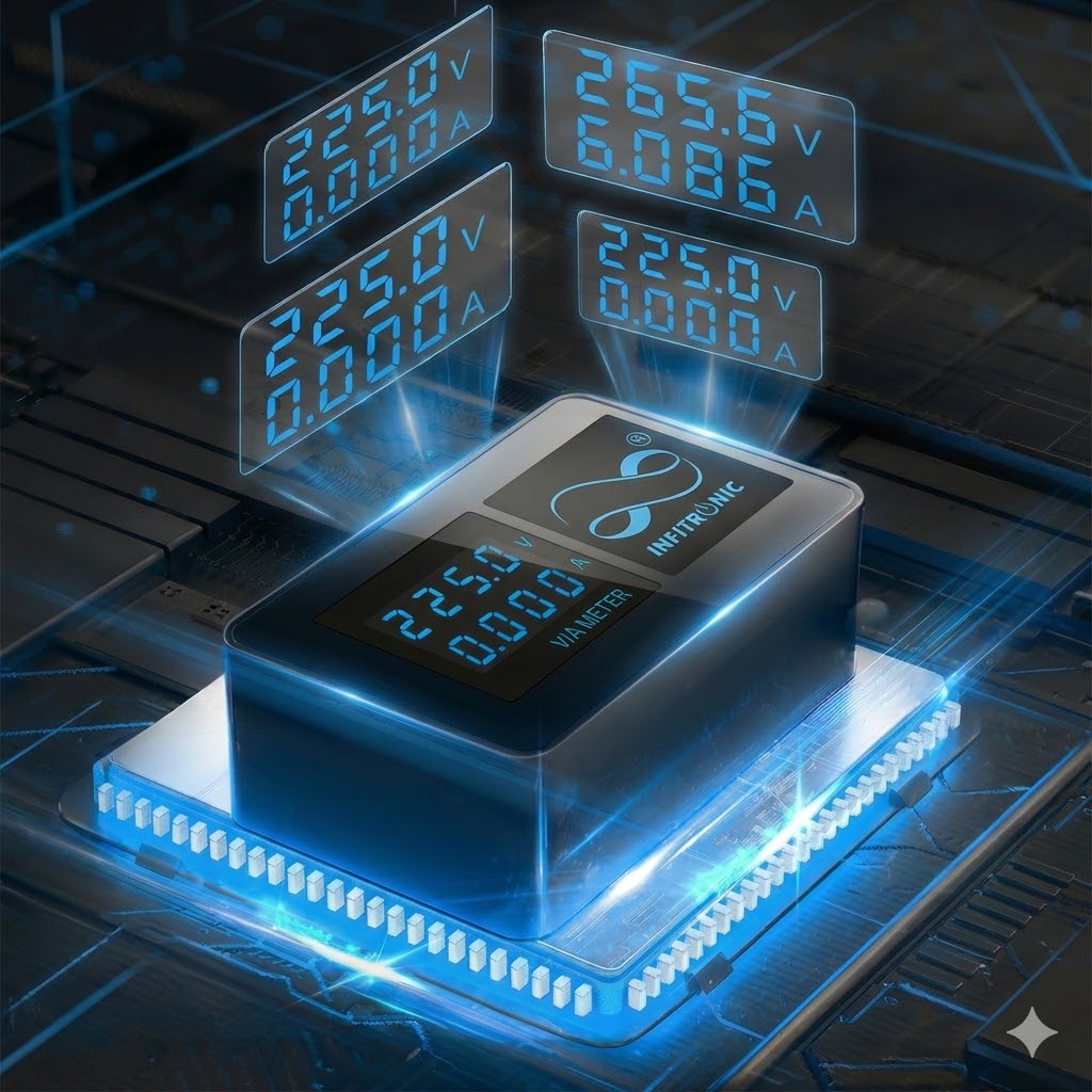 Live-Monitoring: Integriertes Digital-Display zur Anzeige von Spannung (V) und Stromstärke (A) – für maximale Kontrolle der Rack-Auslastung.