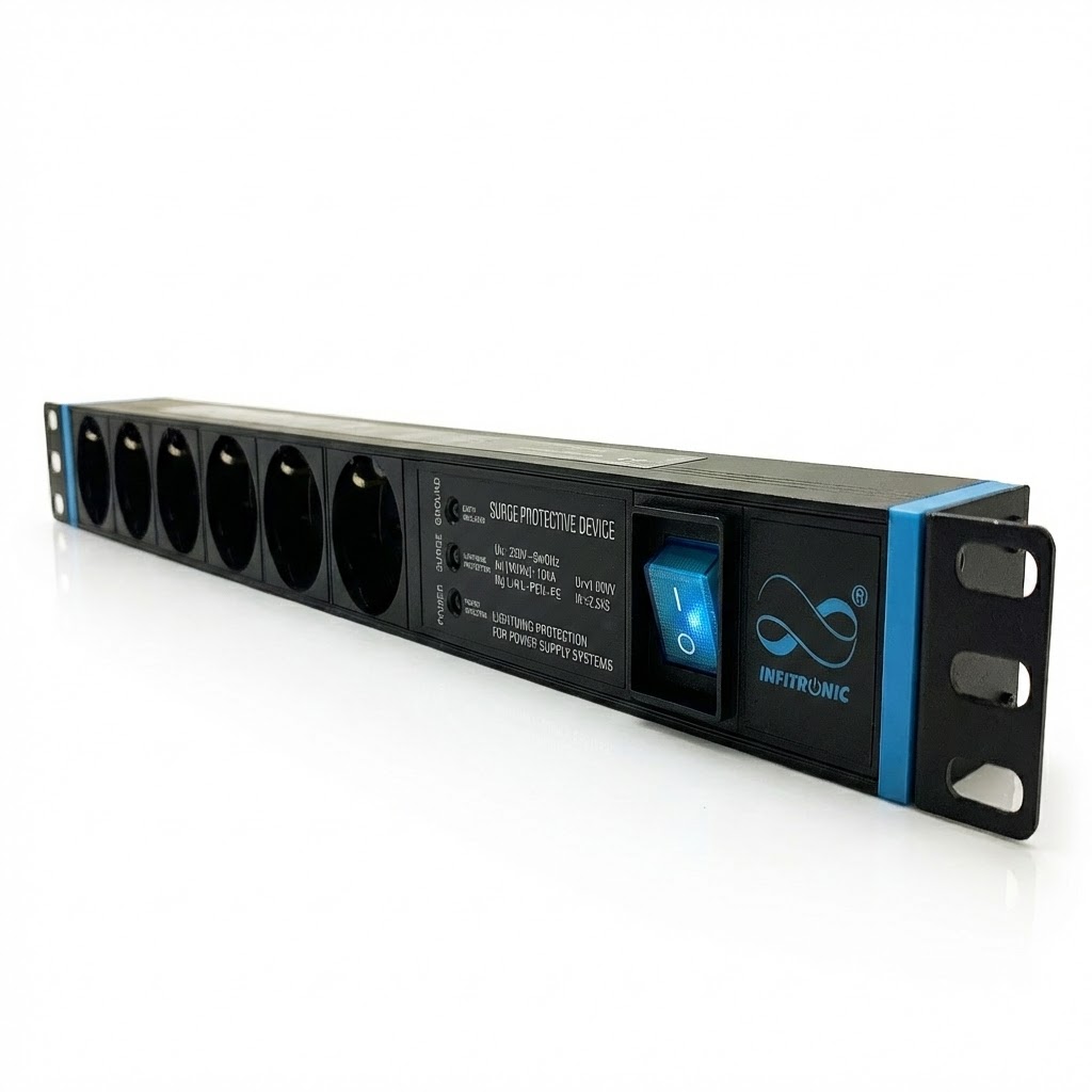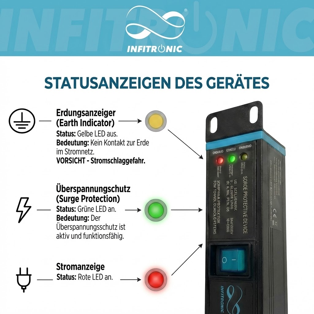 Power (Rot), Überspannung (Grün), Erdung (Gelb)