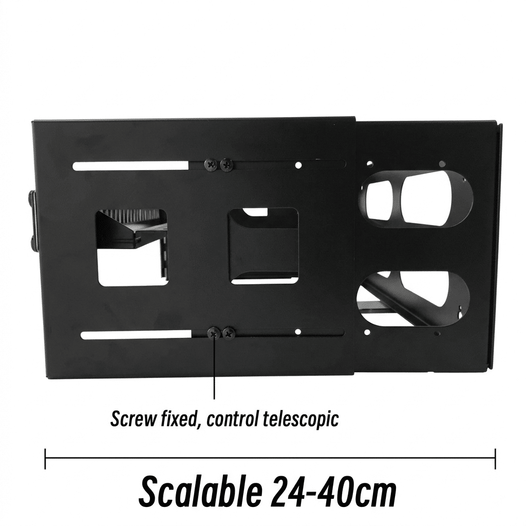 FLEXIBEL TIEFENVERSTELLBAR: Der Wandrahmen passt sich Ihren Geräten an. Die Einbautiefe ist stufenlos von 24 cm bis 40 cm verstellbar, wodurch auch tiefere Switches oder Router sicher montiert werden können, ohne unnötig in den Raum zu ragen.